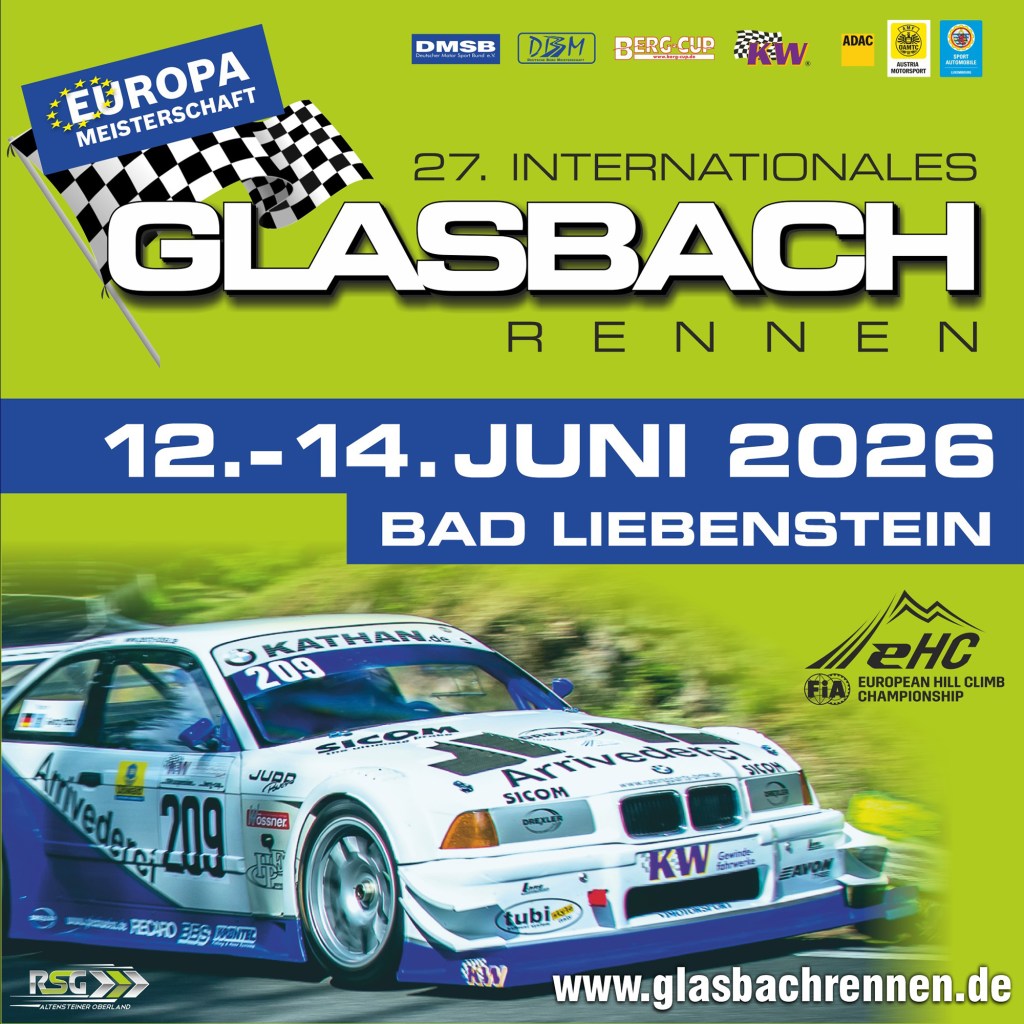 Erleben Sie Motorsport pur auf Deutschlands längster und Europas modernster Bergrennstrecke in Bad Liebenstein, im schönen Thüringer Wald! Das Internationale Glasbachrennen wird vom 12.-14.06.2026 durchgeführt und das höchste Prädikat im internationalen Bergrennsport, die FIA Europa Berg Meisterschaft, ausrichten. Zudem werden die Läufe zur Deutschen Bergmeisterschaft, Österreichischen und Luxemburgischen Meisterschaft durchgeführt. An diesem Wochenende im Juni zieht es wieder tausende Bergrennfans an die legendäre Glasbach-Rennstrecke und damit bis zu 150 Teams aus 14 Nationen. Im Bergdörfchen Steinbach, können die Zuschauer direkt an der Bergrennstrecke aber auch im Fahrerlager Motorsport hautnah erleben. An beiden Veranstaltungstagen wird es Trainings- und Wertungsläufe geben, bei denen die Fahrer um wichtige Punkte in Ihren Meisterschaften fahren. Bisheriger Rekordhalter bei den Sportwagen ist der Italiener Christian Merli, welcher seit 2018 den Streckenrekord mit 1:58.395 min auf der 5,5 Kilometer langen und mit 35 Kurven bestückten Bergrennstrecke, mit einer sagenhaften Durchschnittsgeschwindigkeit von 167 km/h hält. Mit seinem Porsche GT 3 hält der zweifache Weltmeister und Sieger des 24 Stunden Rennens von Le Mans, Timo Bernhard, den Streckenrekord bei den Tourenwagen mit 2:26.98 min.