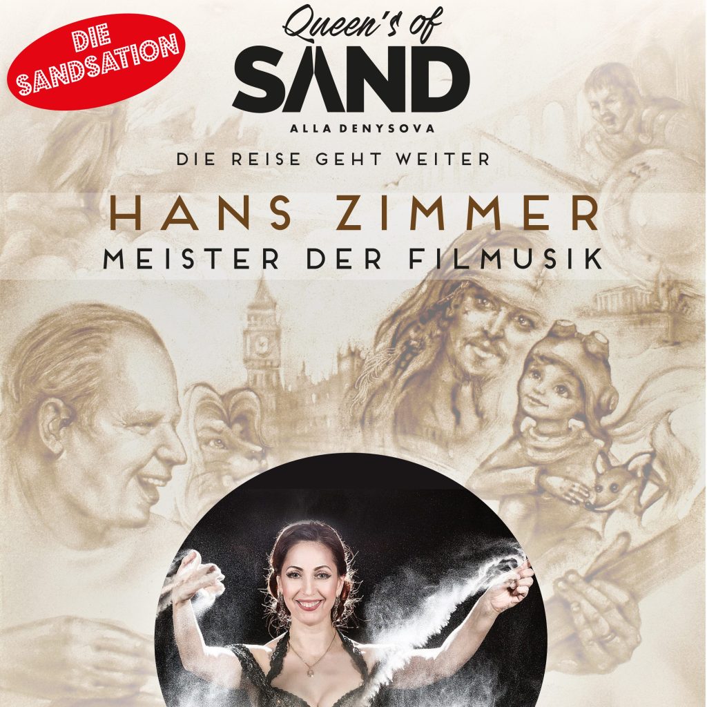 Die Sandartisten, bekannt durch ihre spektakulären Live-Sandmalerei-Shows und gefeiert auf Bühnen in Berlin, Dresden, Leipzig und Frankfurt, präsentieren mit “Hans Zimmer – Meister der Filmmusik“ ein einmaliges Live-Erlebnis. Während die Musik von Hans Zimmer erklingt, entstehen auf der Leinwand magische Sandbilder – gezeichnet live vor den Augen des Publikums von den Meisterinnen der Sandkunst. Jede Linie im Sand erzählt eine Geschichte, jedes Bild verschmilzt mit der Musik zu einer emotionalen Zeitreise durch Zimmers filmisches Universum.