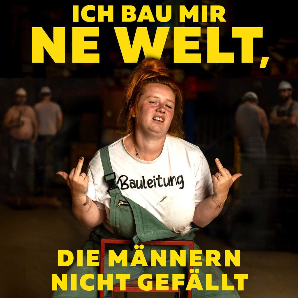 Ich bau mir ’ne Welt, die Männern nicht gefällt. Eine Frau. Eine Baustelle. Ein brennendes Patriarchat