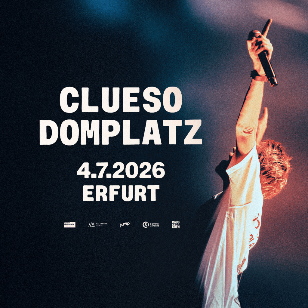 Clueso kommt auch im Sommer 2026 heim nach Erfurt und der Domplatz wird erneut zum Wohnzimmer. Wer in den letzten Jahren dabei war, weiß: das ist mehr als ein Konzert. Es ist ein Treffen unter Freunden, mitten in der Stadt, die Clueso geprägt hat.