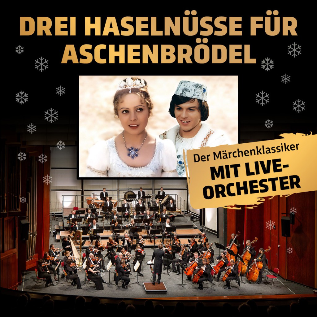 Für mehrere Generationen gehört der tschechische Kultfilm “Drei Haselnüsse für Aschenbrödel“ aus dem Jahr 1973 zu Weihnachten wie Kerzenlicht und der Duft frischer Tannennadeln. Auch in diesem Jahr erfüllt sich zum Fest ein besonderer Wunsch, denn dann ist das Märchen wieder in strahlendem Kinoformat zu erleben. Mit dabei: die Musik Karel Svobodas, live gespielt von der Thüringen Philharmonie Gotha-Eisenach und Szene für Szene mit den romantisch-witzigen Abenteuern auf der Großleinwand synchronisiert.