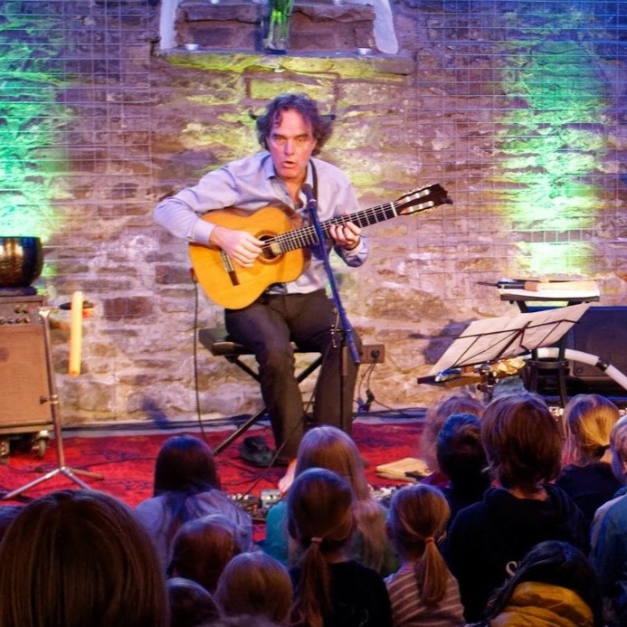 Ein Geschichtenkonzert für Kinder von drei bis elf Jahren – Erzählung, Gitarre, Live-Looping, Klanginstrumente