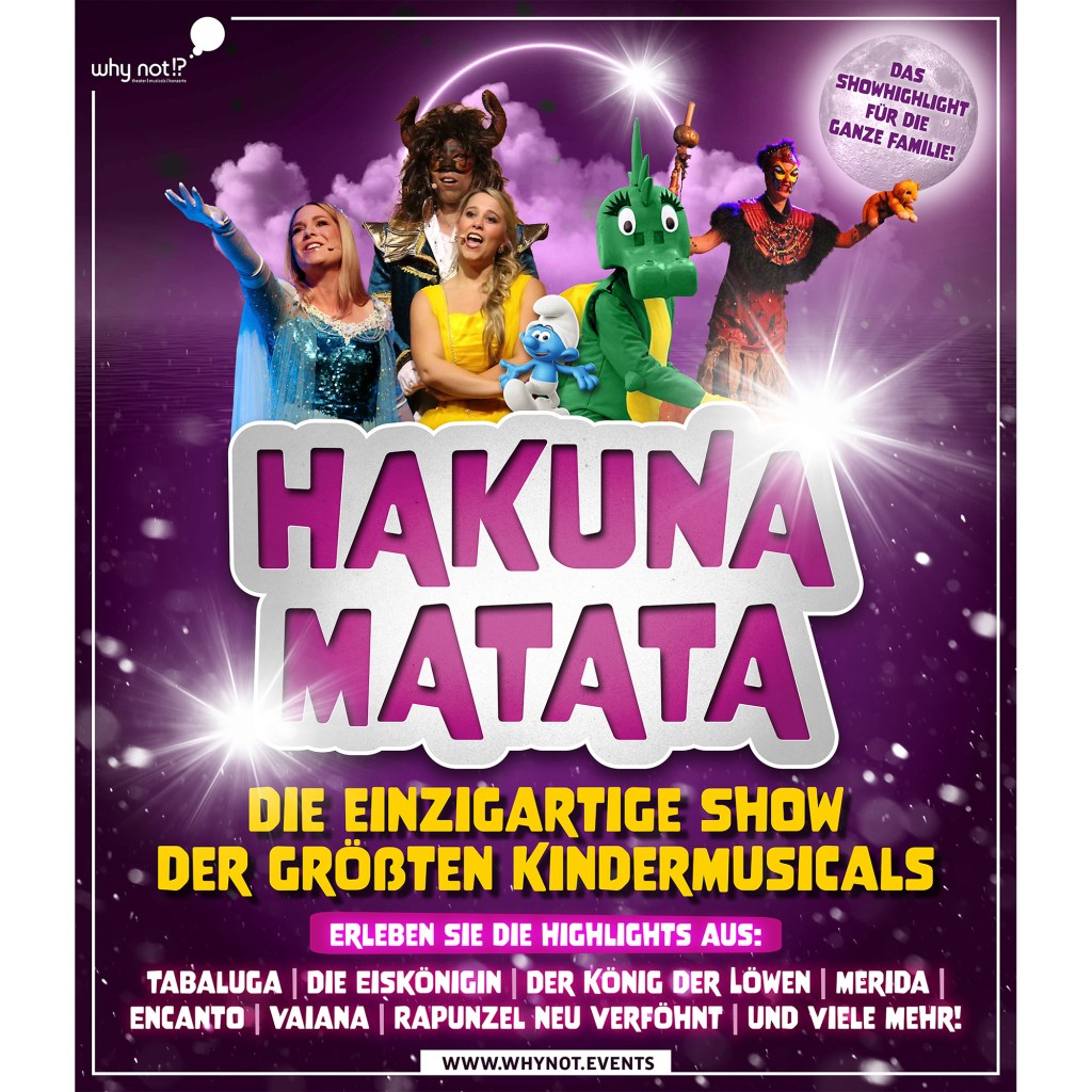 Die Kindermusical-Gala „Hakuna Matata“ verspricht eine zauberhafte Reise durch die bunte Welt der Musicals, den bekanntesten Disney-Filmen, sowie den beliebtesten Kinderfilmen-und Serien und berührt die Herzen aller Generationen. Mit den großen Kindheits-Helden und mitreißenden Liedern zum Mitsingen und Tanzen wird diese Gala zu einem unvergesslichen Erlebnis für die ganze Familie.