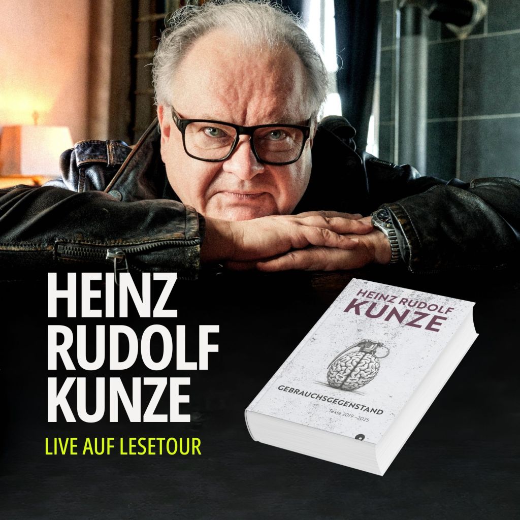 Im Jahr seines 70. Geburtstags setzt Heinz Rudolf Kunze ein literarisches Ausrufezeichen: Pünktlich zur Leipziger Buchmesse erscheint sein neues Buch “Gebrauchsgegenstand“ – ein Werk von seltener Klarheit, Dringlichkeit und poetischer Kraft. Unmittelbar danach geht Kunze auf Lesetour durch Deutschland.