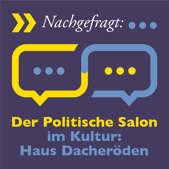 Die Reihe “Nachgefragt. Der Politische Salon im Kultur: Haus Dacheröden“ möchte über Themen diskutieren, die gesellschaftlich relevant sind und die Menschen bewegen. Anders als in der politischen Arena, in der oft mit Verkürzungen und Zuspitzungen gearbeitet wird, soll in den Salons eine an der Sache orientierte und differenzierte Auseinandersetzung stattfinden, der streitbare, aber auch respektvolle Diskurs gesucht werden. Das Publikum ist ausdrücklich eingeladen, sich aktiv in das Gespräch einzubringen.