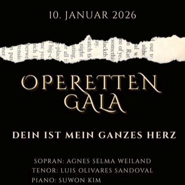 Die beiden Opernsänger Agnes Selma Weiland und Luis Olivares Sandoval entführen Sie in das Land der Operette. Erleben Sie einen bunten Strauß bekannter Melodien, tauchen Sie ein in die vielseitigen Liebesgeschichten und genießen Sie ein Feuerwerk der Gefühle im Theater Arnstadt. Am Flügel werden die beiden Klassikstars ausdrucksstark von Suwon Kim begleitet.