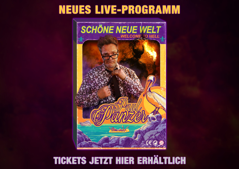 Der große äußere Reichtum einerseits und eine um sich greifende innere Leere, künstliche Intelligenz, Kryptowelten, virtuelle Partnersuche und der unstillbare Hunger menschlicher Bedürfnisse, machen Herrn Panzer einmal mehr zum Sisyphos der modernen Welt. Für unseren Paul das Dilemma seines Lebens, für die Zuschauer… der größte Spaß des Jahres.
