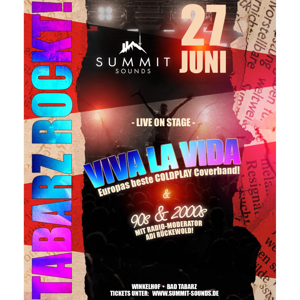 Headliner des Abends ist VIVA LA VIDA, eine der erfolgreichsten Coldplay-Coverbands Europas. Mit einer aufwendig produzierten Show und den größten Coldplay-Hymnen sorgt die Band für Gänsehaut, Mitsing-Momente und Festival-Atmosphäre unter freiem Himmel.