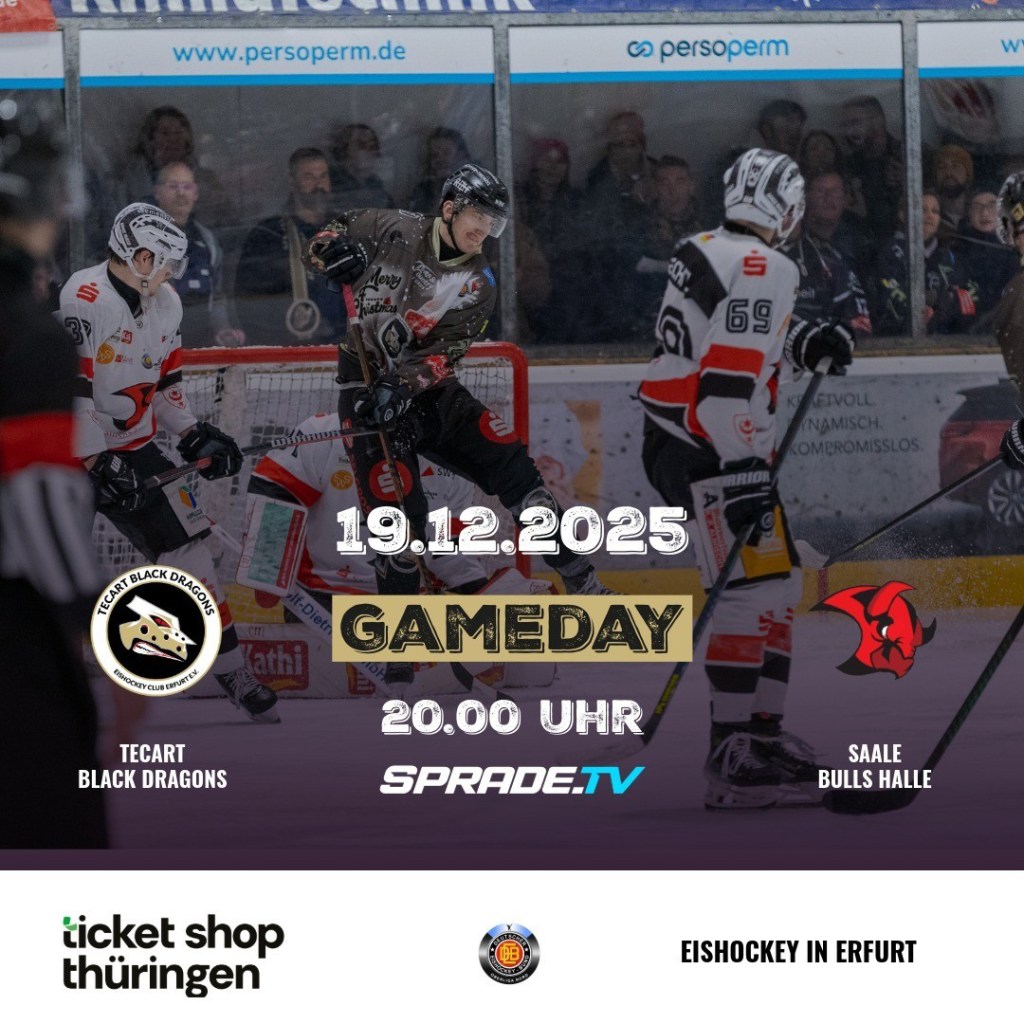 Erlebt die Faszination Eishockey live und spürt die einzigartige Atmosphäre in der Erfurter Eishalle! Wenn unsere TecArt Black Dragons auf die Saale Bulls Halle treffen, ist Spannung, Leidenschaft und Teamgeist garantiert.