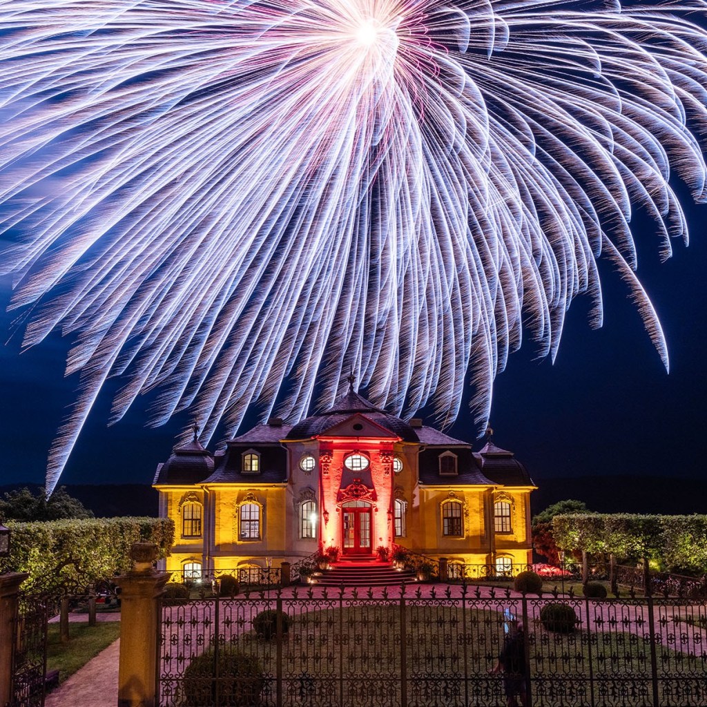 Flanieren im spätsommerlichen, am Abend in warmes Kerzenlicht getauchten Schlosspark um die drei Schlösser, auf den verschiedenen Bühnen in Park und Schlössern Musik verschiedenster Stil von Barock bis Jazz, hier ein Glas Saalewein, da ein leckeres Häppchen genießen und zum abschließenden Höhepunkt ein Feuerwerk aus dem Saaletal bestaunen… Das ist die wunderbare Atmosphäre der Dornburger Schlössernacht, bereits zum dreizehnten Mal veranstaltet von der Stiftung Thüringer Schlösser und Gärten.